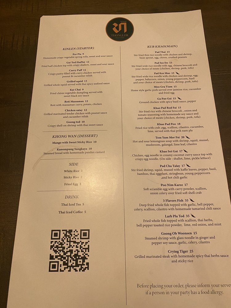 Thonglor is a trendy and cozy Thai restaurant located in Brighton, MA. Offering a wide range of dishes, the menu includes delectable options such as the crispy Chicken Satay, flavorful Pad Thai noodles, and the creamy Roti Massaman. Customers rave about the fresh and delicious food, with favorites like the Moo Gratiam garlic pork and Larb Gai spicy chicken salad. The atmosphere is described as casual yet classy, perfect for a relaxed dining experience. Don't miss out on the opportunity to try the vibrant and flavorful dishes at Thonglor, where every bite is a taste of authentic Thai cuisine.